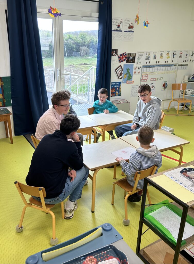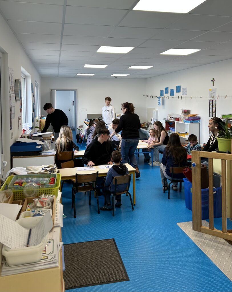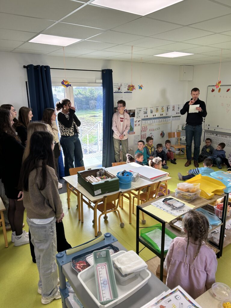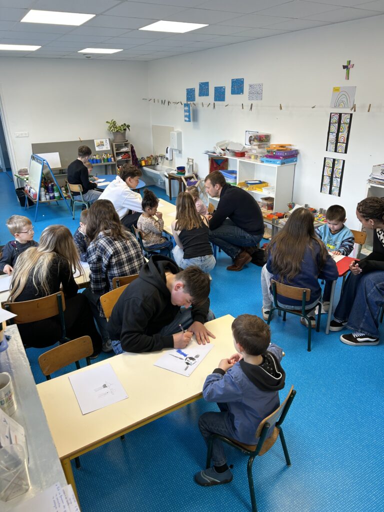 Jeudi dernier, un atelier artistique réunissant les élèves de 3e et ceux de maternelle a eu lieu. L’objectif de cette collaboration était que les petits dessinent les monstres puis que les grands aident au modelage.
